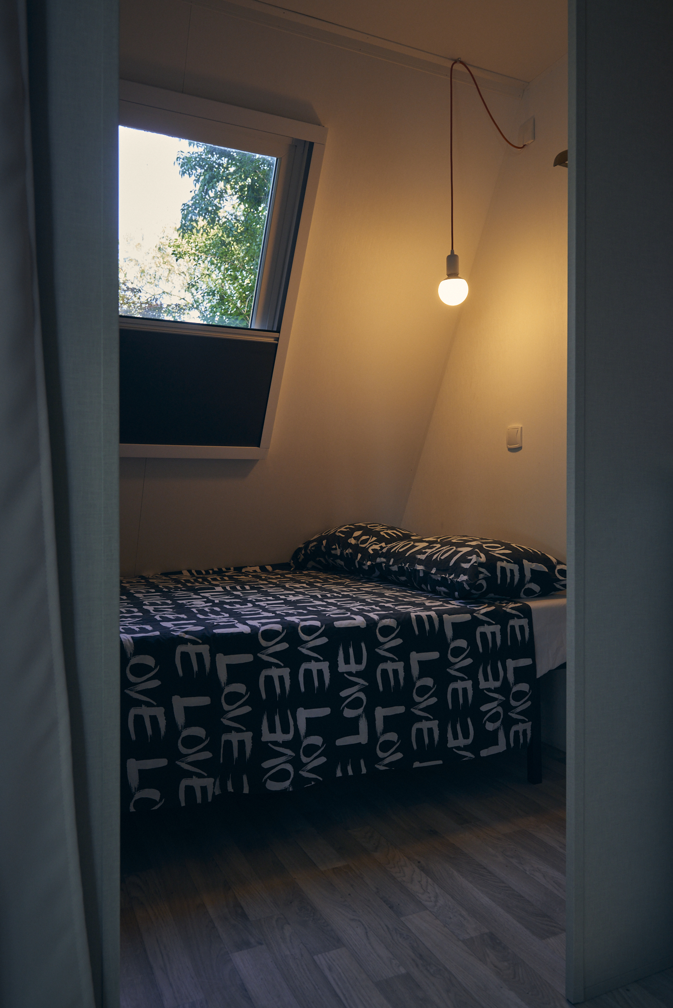 Dotata di: area cucina/ristoro (composta da piano di cottura, frigorifero e forno a microonde), tavolo pieghevole con sgabelli, camera matrimoniale, seconda camera con due letti singoli.